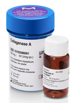 Unit Definition: Collagenase from Roche is assayed in Wünsch units (1 μmol of product formed per minute at +25 °C with Wünsch substrate).