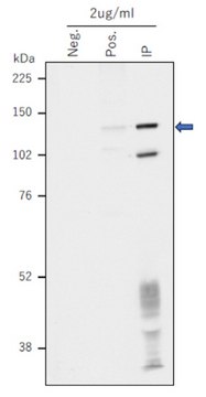Western Blotting Analysis: A 1:250 dilution from a representative lot detected TERT in Mitotic HeLa cells with RO3306 treatment (negative) versus mitotic HeLa cell samples (positive), where the positive control samples were obtained by IP using clone 10E9-2 to enrich hTERT ( Data courtesy of Dr. Kenkichi Masutomi, National Cancer Center Research Institute, Tokyo, Japan).