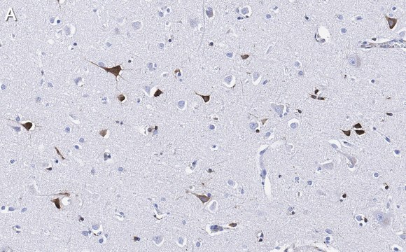 Immunohistochemistry (Paraffin) Analysis: A 1:1,000 dilution from a representative lot detected Prion Protein in human cerebral cortex and human Alzheimer′s diseased brain tissue sections.