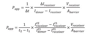 Using the equation below, values of the intensities of the cell channel (Idonor) and the adjacent channel (Ireceiver) were input with measurements for the area and volume of the chip to determine the apparent permeability (Papp).