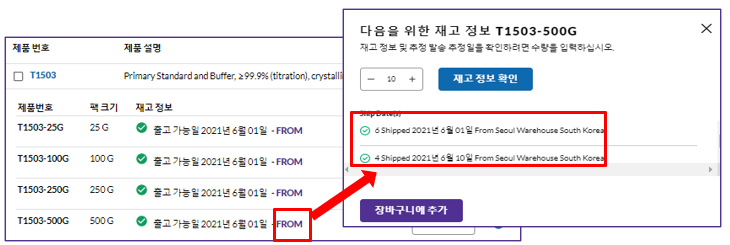 A: Products marked as available for delivery as of today's date on the homepage are products that have more than one domestic stock. If you click “FROM” and “Check Availability” after selecting the inventory quantity inquiry and entering the desired quantity, the available stock quantity will be marked.