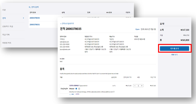A: You can convert to an order by clicking Account → Quotes → Search Latest Quotation → Click Quotation Number and Add To Cart.
