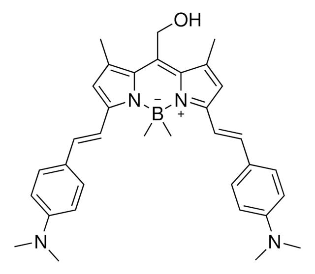 (3,7-Bis(4-(dimethylamino)styryl)-1,5,5,9-tetramethyl-dipyrrolo[1,3,2]diazaborinin-10-yl)methanol, 3,5-Bis(4-dimethylamino)styryl-1,7-dimethyl-8-hydroxymethyl pyrromethene dimethylborate, BODIPY Photocage