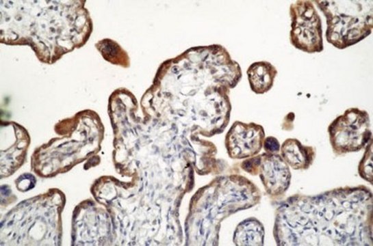 Human endometrium cells, placenta, bladder, breast, ovarian carcinomas.