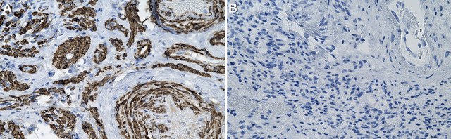 Immunohistochemistry (Paraffin) Analysis: A 1:100 dilution from a representative lot detected Actin 2 in Human uterus tissue sections.