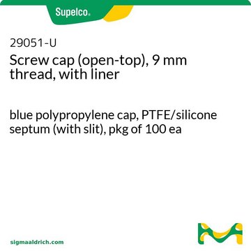 PTFE/silicone septum (with slit), blue polypropylene cap