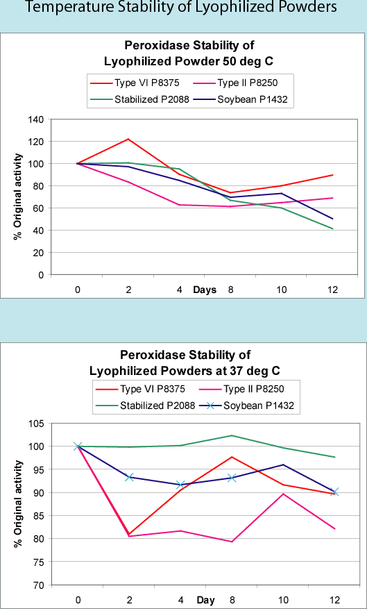 The powdered peroxidases should be refrigerated at 2-8 °C. Freezer storage is also acceptable but not required. The suspension (P6140) should be stored at 2-8 °C. If properly stored, these products have a shelf life of at least two years.