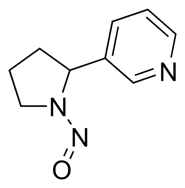 N′-Nitrosonornicotine, also known as NNN, is a nitrosamine and potential carcinogen found in a variety of tobacco products including snuff, cigarettes, chewing tobacco, and cigars. Certified Spiking Solutions® are suitable for use in nicotine testing or environmental monitoring by LC-MS/MS or GC/MS.