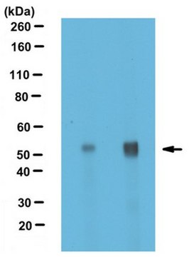 Western Blotting Analysis: A representative lot from an independent laboratory specifically detected nontyrosinated alpha Tubulin and not tyrosinated alpha Tubulin from purified porcine alpha Tubulin (Gundersen, G. G., et al. (1984). Cell. 38(3):779-89.).