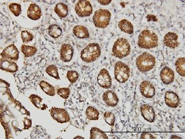 PRC/PRF/5 cells, A431 cells, Human small intestine tissue, human colon tissue