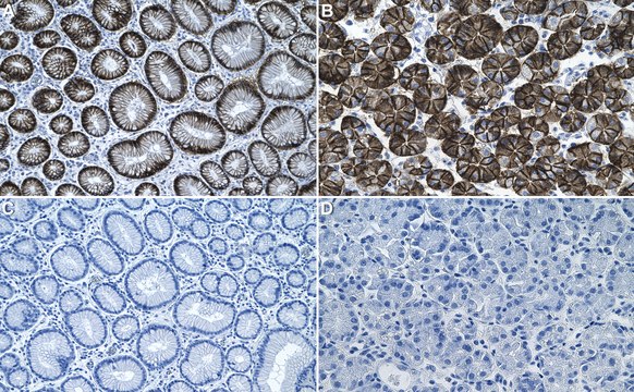 Immunohistochemistry (Paraffin) Analysis: A 1:1,000 dilution from a representative lot detected CA9 in Human stomach tissue sections.