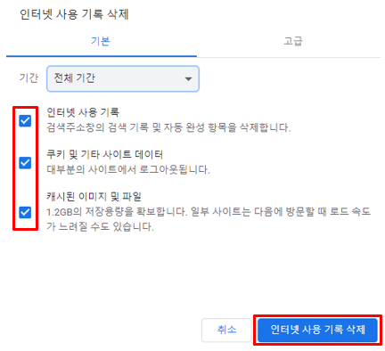 2. 크롬 브라우저의 캐시 및 쿠키 삭제방법