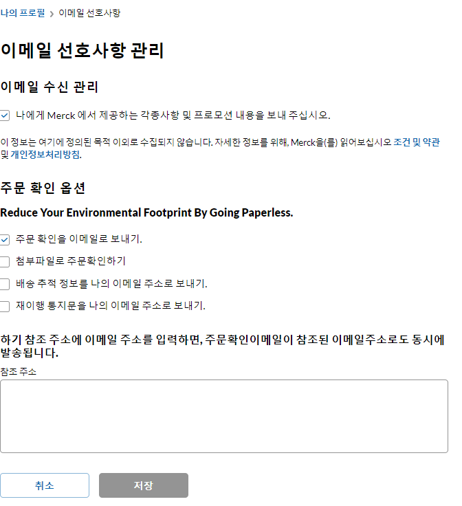4. 이메일 선호사항 관리 - 마케팅 정보 동의를 하시면 머크의 최신 소식 및 프로모션을 받아 보실 수 있습니다.