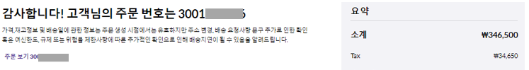 7. 주문이 완료되면 10자리의 주문번호를 아래와 같이 확인하실 수 있습니다. 본 창을 확인하지 않으신 후 닫기 버튼을 누르시거나 뒤로 가기를 클릭하시면 정상적인 주문 진행이 되지 않을 수 있으니 고객지원팀으로 문의해 주시기 바랍니다.