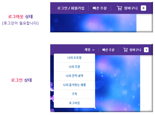 잠깐! 모든 견적 및 주문과정은 로그인이 필요합니다. 로그인 상태는 화면 오른쪽 상단에서 확인할 수 있습니다.