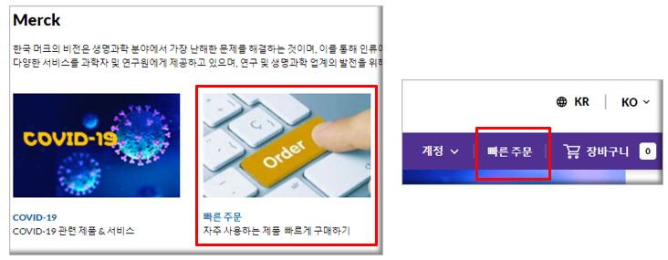 Step 1-2. 빠른 주문에서 입력하기 (제품번호를 알고 있는 경우)
