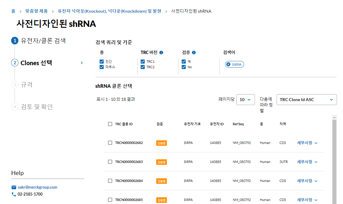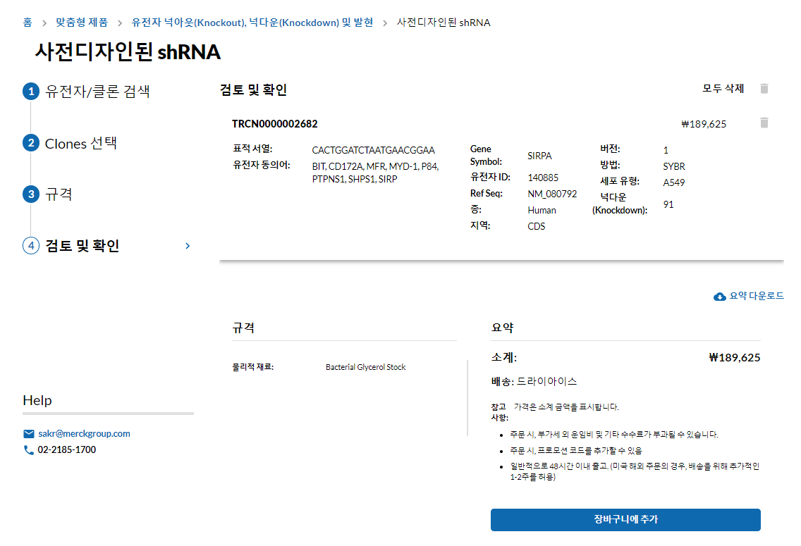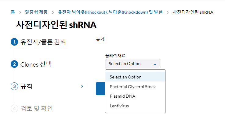 shRNA를 온라인으로 주문하시기 위해, 아래 단계를 확인하시기 바랍니다.