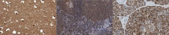 Immunohistochemistry Analysis: A 1:50 dilution from a representative lot detected Histone acetyltransferase KAT2A in human pancreas, cerebral cortex, and tonsil tissue sections.