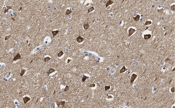 Immunohistochemistry (Paraffin) Analysis: A 1:1,000 dilution from a representative lot detected CaM Kinase IIa in human cerebral cortex tissue sections.