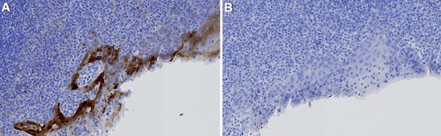Immunohistochemistry (Paraffin) Analysis: A 1:1,000 dilution from a representative lot detected CSF-1R/CD115 in Human tonsil tissue sections.