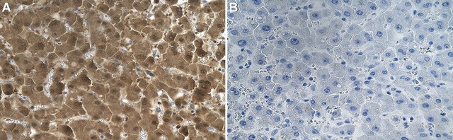 Immunohistochemistry (Paraffin) Analysis: A 1:1,000 dilution from a representative lot detected LDH-A in Human liver tissue sections.