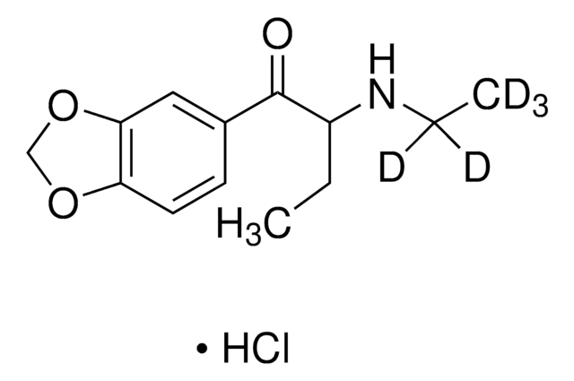 Eutylone is a synthetic cathinone found in numerous bath salt blends under the street name bk-MBDB. This designer drug and stimulant is abused in the US and Europe. This stable-labeled internal standard is suitable for quantification of eutylone using LC/MS or GC/MS methods for applications in clinical toxicology, forensic analysis, and urine drug testing applications.