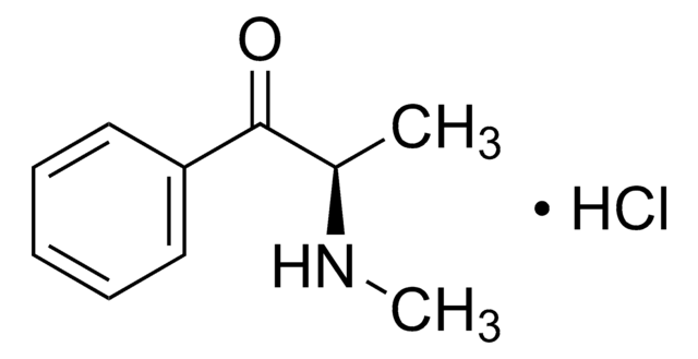 A Snap-N-Spike® Reference Solution suitable for use in LC/MS or GC/MS applications such as urine drug testing, clinical toxicology, and forensic analysis. Methcathinone, known by street names "Em-kat" and "Cat", is an illicit drug with stimulant and euphoric effects.