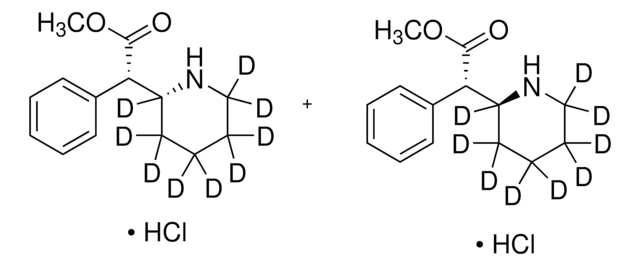 Methylphenidate is a psychostimulant prescribed for the treatment of attention-deficit hyperactivity disorder (ADHD), tachycardia and narcolepsy. This internal standard is suitable for quantitation of methylphenidate levels in urine, serum or plasma by LC/MS or GC/MS for urine drug testing, clinical toxicology or forensic analysis. Methylphenidate is sold under trade names Concerta® and Ritalin®.