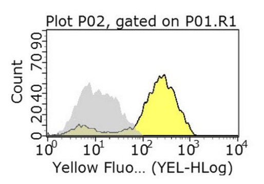 Flow Cytometry Analysis: 0.1 µg of this antibody detected aminopeptidase N/CD13-positive granulocytes among human PBMCs.