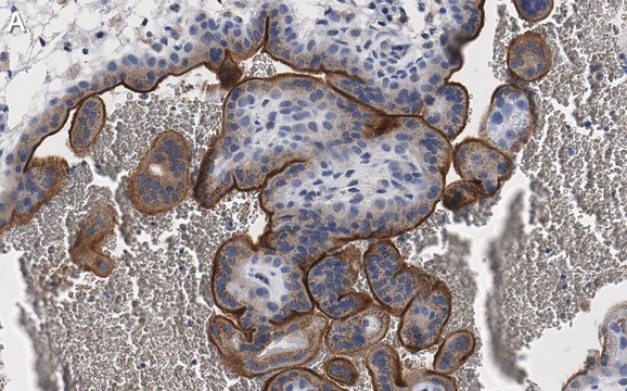 Immunohistochemistry (Paraffin) Analysis: A 1:100 dilution from a representative lot detected eNOS in human placenta tissue sections.