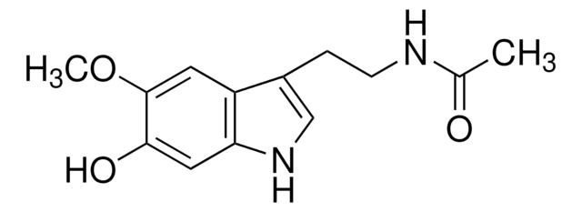 6-Hydroxymelatonin (6-OHM) is an antioxidant with a free radical scavenging role. Like melatonin, it reduces the impact of UVB-induced oxidative stress in melanocytes. It also aids protection during iron (Fe2+)-induced neurotoxicity. 6-OHM effectively reduces lipid peroxidation and superoxide anion production induced by potassium cyanide (KCN).