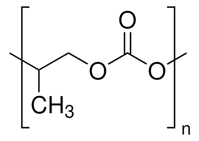 Poly(propylene carbonate) (PPC) is an aliphatic polycarbonate which is mainly used as a packing material and binder resin. The ester group allows the backbone to have molecular flexibility. It is prepared by reacting carbon dioxide and propylene oxide. It has a low thermal stability which can be improved by capping the polymer with active agents.