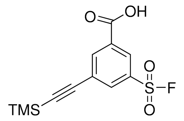 3-(Fluorosulfonyl)-5-((trimethylsilyl)ethynyl)benzoic acid is used for chemical probe synthesis, this trifunctional building block contains an aryl sulfonyl fluoride group, alkyne tag, and carboxylic acid synthetic handle. When appended to a ligand or pharmacophore through its acid linker, this building block allows for SuFEx-enabled, context-specific covalent modification of a biological target with potential for downstream applications via the alkyne tag. Use alone or in parallel with other multi-functional building blocks to discover the optimal probe for your chemical biology experiments.