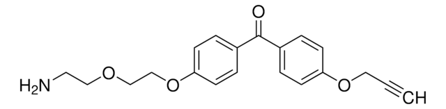 (4-(2-(2-Aminoethoxy)ethoxy)phenyl)(4-(prop-2-yn-1-yloxy)phenyl)methanone is used for chemical probe synthesis, this trifunctional building block contains a light-activated benzophenone, alkyne tag, and amine synthetic handle. When appended to a ligand or pharmacophore through its PEGylated amine linker, this building block allows for UV light-induced covalent modification of a biological target with potential for downstream applications via the alkyne tag. Use alone or in parallel with other multi-functional building blocks to discover the optimal probe for your chemical biology experiments.