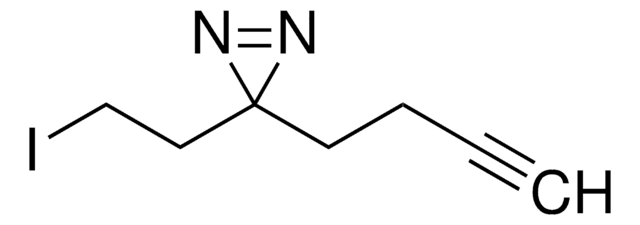 Used for chemical probe synthesis, this trifunctional building block contains a light-activated diazirine, alkyne tag, and iodine synthetic handle. When appended to a ligand or pharmacophore through its iodinated linker, this building block allows for UV light-induced covalent modification of a biological target with potential for downstream applications via the alkyne tag. Use alone or in parallel with other multi-functional building blocks to discover the optimal probe for your chemical biology experiments.