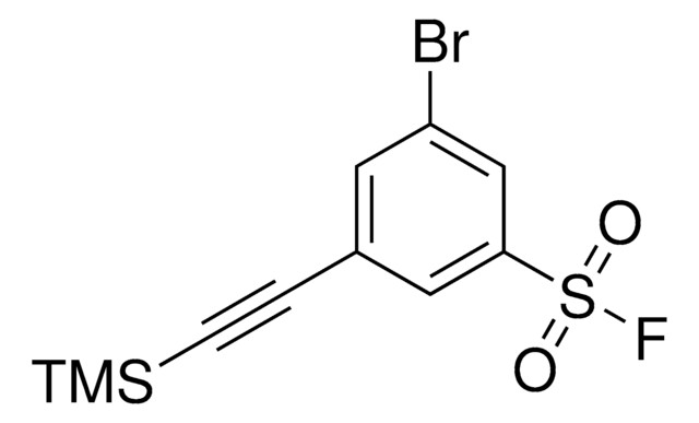 3-Bromo-5-((trimethylsilyl)ethynyl)benzenesulfonyl fluoride is used for chemical probe synthesis, this trifunctional building block contains an aryl sulfonyl fluoride group, alkyne tag, and bromine synthetic handle. When appended to a ligand or pharmacophore through its brominated linker, this building block allows for SuFEx-enabled, context-specific covalent modification of a biological target with potential for downstream applications via the alkyne tag. Use alone or in parallel with other multi-functional building blocks to discover the optimal probe for your chemical biology experiments.
