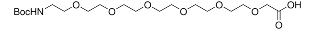 This heterobifunctional, PEGylated crosslinker features a carboxylic acid at one end and Boc-protected amino group at the other, which can be deprotected with mildly acidic conditions. The hydrophillic PEG linker facilitates solubility in biological applications. BocNH-PEG6-acid can be used for bioconjugation or as a building block for synthesis of small molecules, conjugates of small molecules and/or biomolecules, or other tool compounds for chemical biology and medicinal chemistry that require ligation. Examples of applications include its synthetic incorporation into antibody-drug conjugates or proteolysis-targeting chimeras (PROTAC® molecules) for targeted protein degradation.