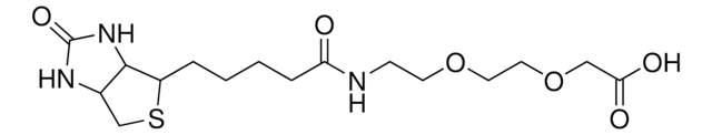 8-Biotinylamido-3,6-dioxaoctanoic acid is a versatile biotinylated linker that can be incorporated into chemical tools via its terminal amino group. Labeling materials or proteins with biotin provides a means to enrich and capture targets from biological systems.