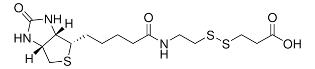3-[2-N-(Biotinyl)aminoethyldithio]propanoic acid (Biotin-SS-COOH) is a cleavable, biotinylated crosslinkers. The linker can also be used for synthesis of chemical biology tools for labeling target proteins in biological experiments and assays. It possesses dual functionality: enrichment via the biotin and an embedded disulfide bridge for cleavage under reducing conditions.