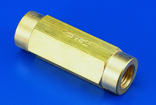 Max. pressure: 3,000 psig. ¼ × ¼ in. NPTF inlets. Attaches to the outlet side of a regulator to prevent backstreaming of liquids and gases into the regulator or cylinder.