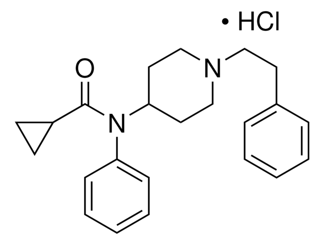Cyclopropyl fentanyl is an opioid analgesic analog of fentanyl and has been sold as a designer drug on the illicit drug market. Cyclopropyl fentanyl is a Schedule I controlled drug in the USA since January 2018 and was banned in Finland and Sweden in 2017. A certified Snap-N-Spike® solution suitable for use as starting material in calibrators and controls for fentanyl LC/MS or GC/MS testing methods in clinical toxicology, urine drug testing, prescription monitoring, or forensic analysis applications. This Certified Spiking Solution® is supplied in a convenient US DEA-exempt solution format.
