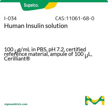 The Recombinant Human Insulin in phosphate buffered saline (PBS), pH 7.2 (solution) is a standard that fulfills the criteria set by ISO for a certified reference material and a primary standard. It is traceable to the SI and higher order standards through a continuous series of comparisons.