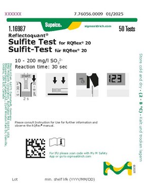 Sulfite Test, reflectometric, 10-200 mg/L (SO32-), for use with REFLECTOQUANT®