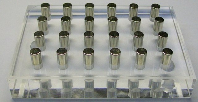 for use with separation of magnetic particles from solutions in a 96-well plate
