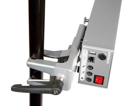 Steritest® Symbio communication hub holder for hoods is used to attach the communication hub to one of the legs of the laminar flow hood. The depth can be adjusted.