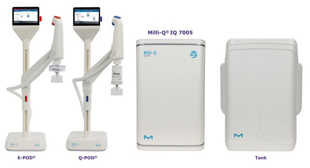 • Milli-Q® pure and ultrapure production unit offers flexible installation and more simplified maintenance.