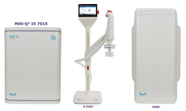 The Milli-Q® IX 7015 system is a compact, ergonomic, mercury-free and intelligent water purification solution that delivers consistently high quality pure water on demand. The system features three separate and distinct components: