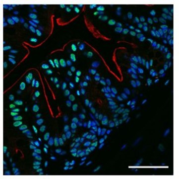 Immunofluorescence Analysis: A 1:500 dilution from a representative lot detected Histone H3K27propionyl in Mouse cecal sections (Data courtesy of Dr. Leah Gates, Dave Allis Lab @ Rockefeller University, New York).