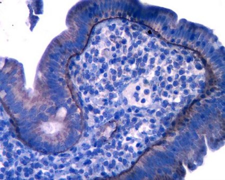 Immunohistochemistry Analysis: A 1:100 dilution of this antibody detected Laminin alpha 5 in human precancerous colorectal lesion tissue.