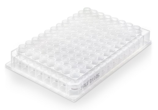 MultiScreen® filter plates with Ultracel® -10 membrane allow for processing and collection of sample volumes from 50 to 500 µL. They are compatible with a range of standard receiver 96-well microtiter plates including 300 µL, 700 µL deep well and 150 µL conical well.